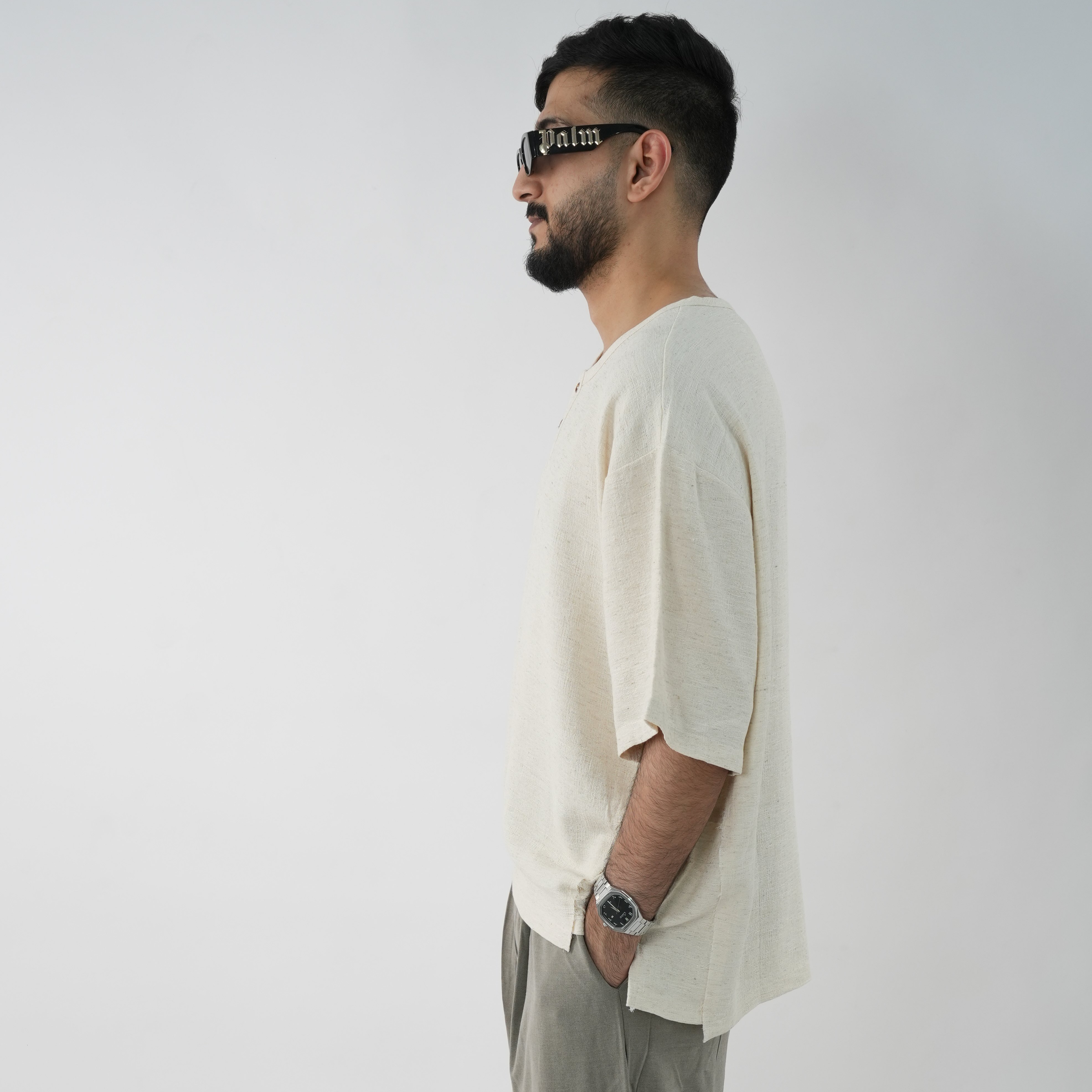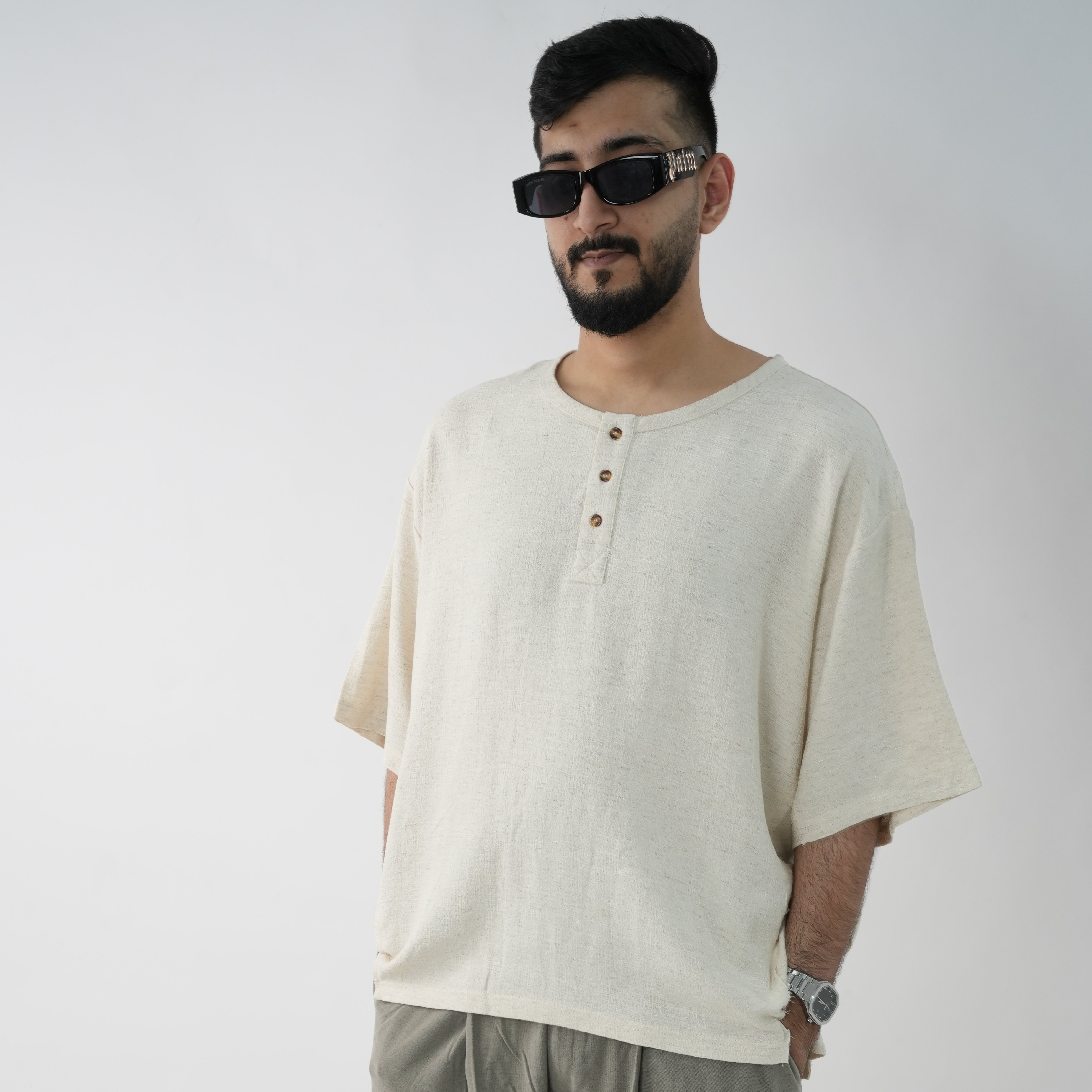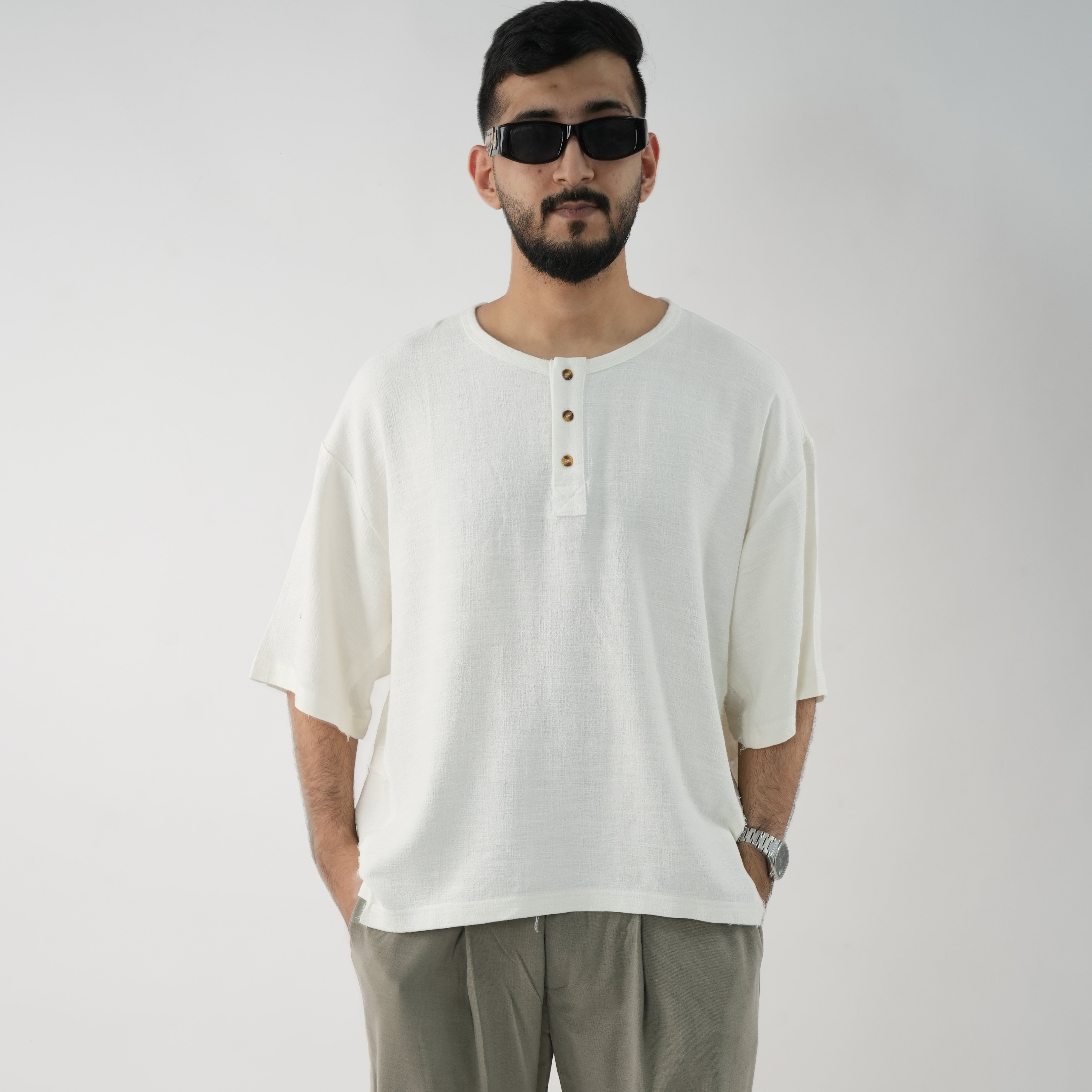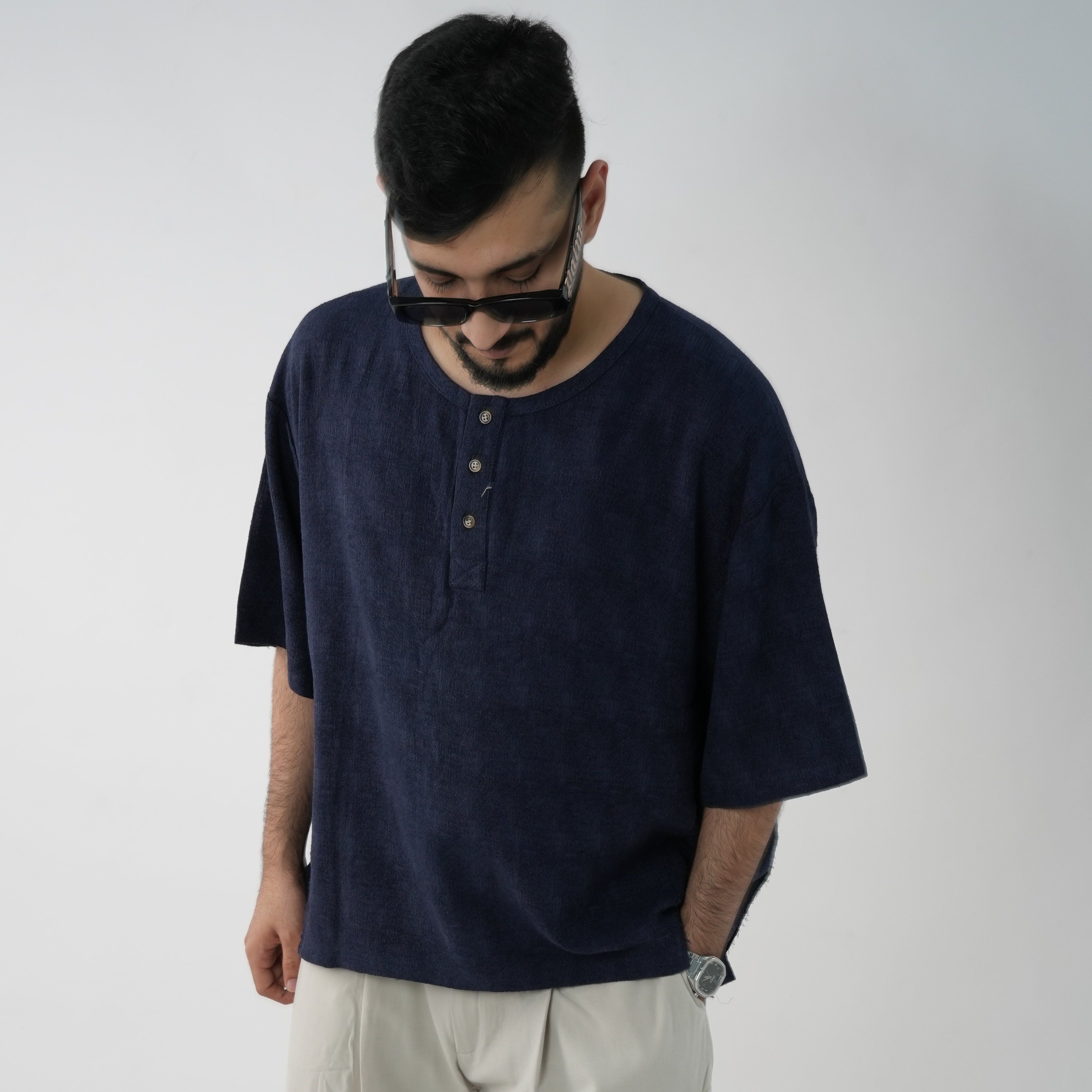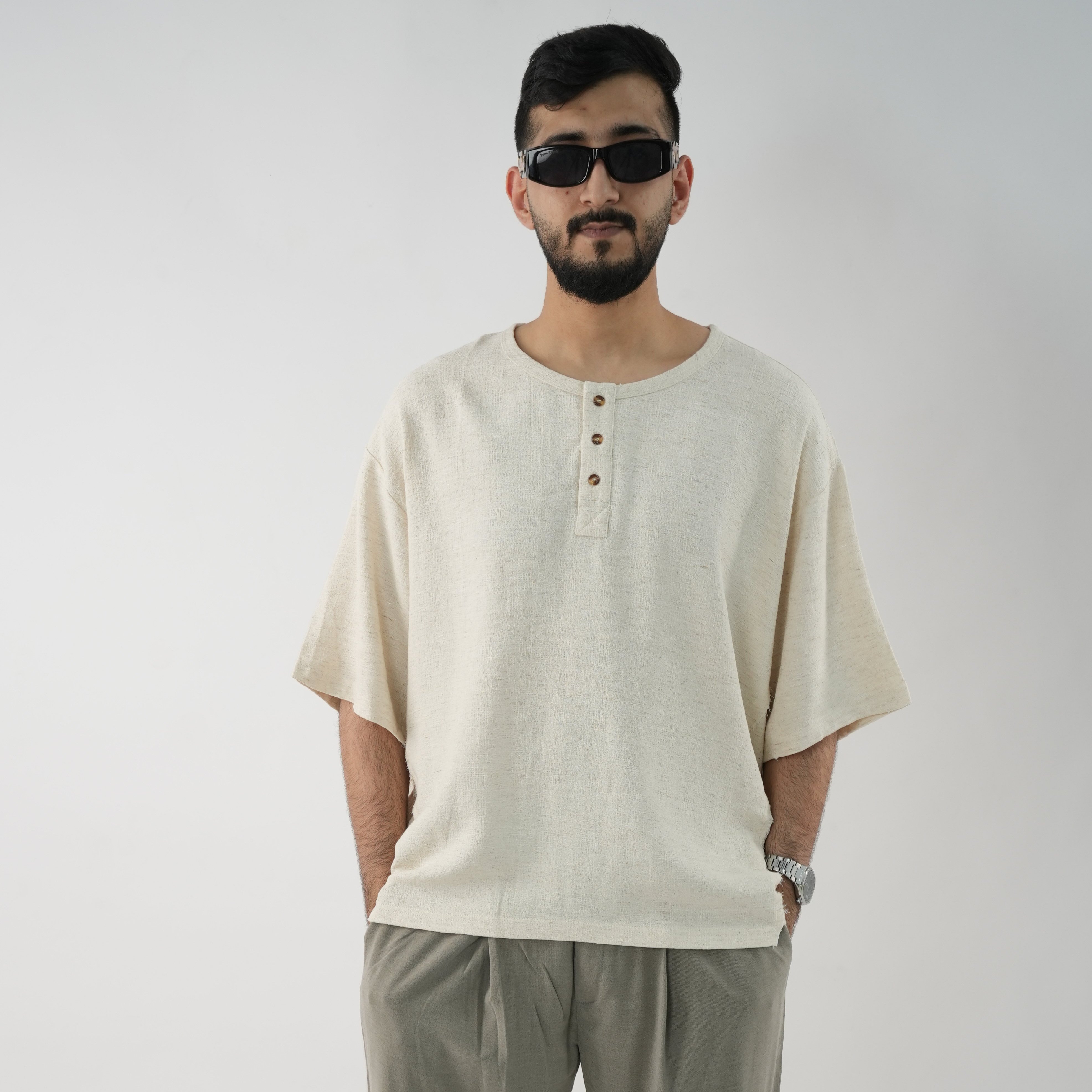 تيشرت كتان أنيق بخامة خفيفة ومريحة، يتميز بتصميم ثلاث أزرار من الأمام لمسة كلاسيكية وعصرية في نفس الوقت. مناسب للجنسين ويمنحك إطلالة راقية ومريحة للارتداء اليومي أو الطلعات الكاجوال.