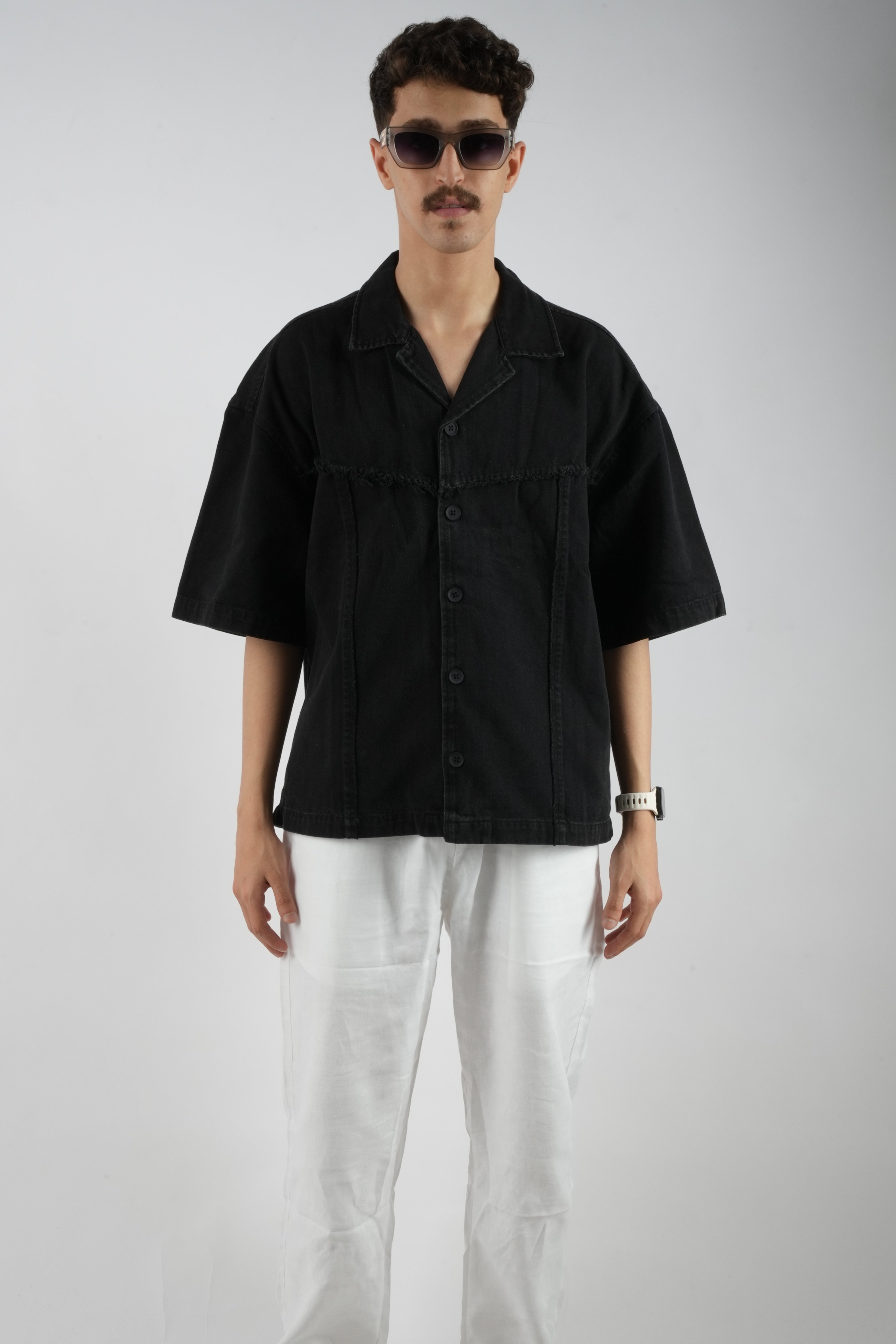 • من الأمام: قصّات وتقطيعات خفيفة مع خيوط بارزة تعطي القميص روح كاجوال عصرية وشبابية.