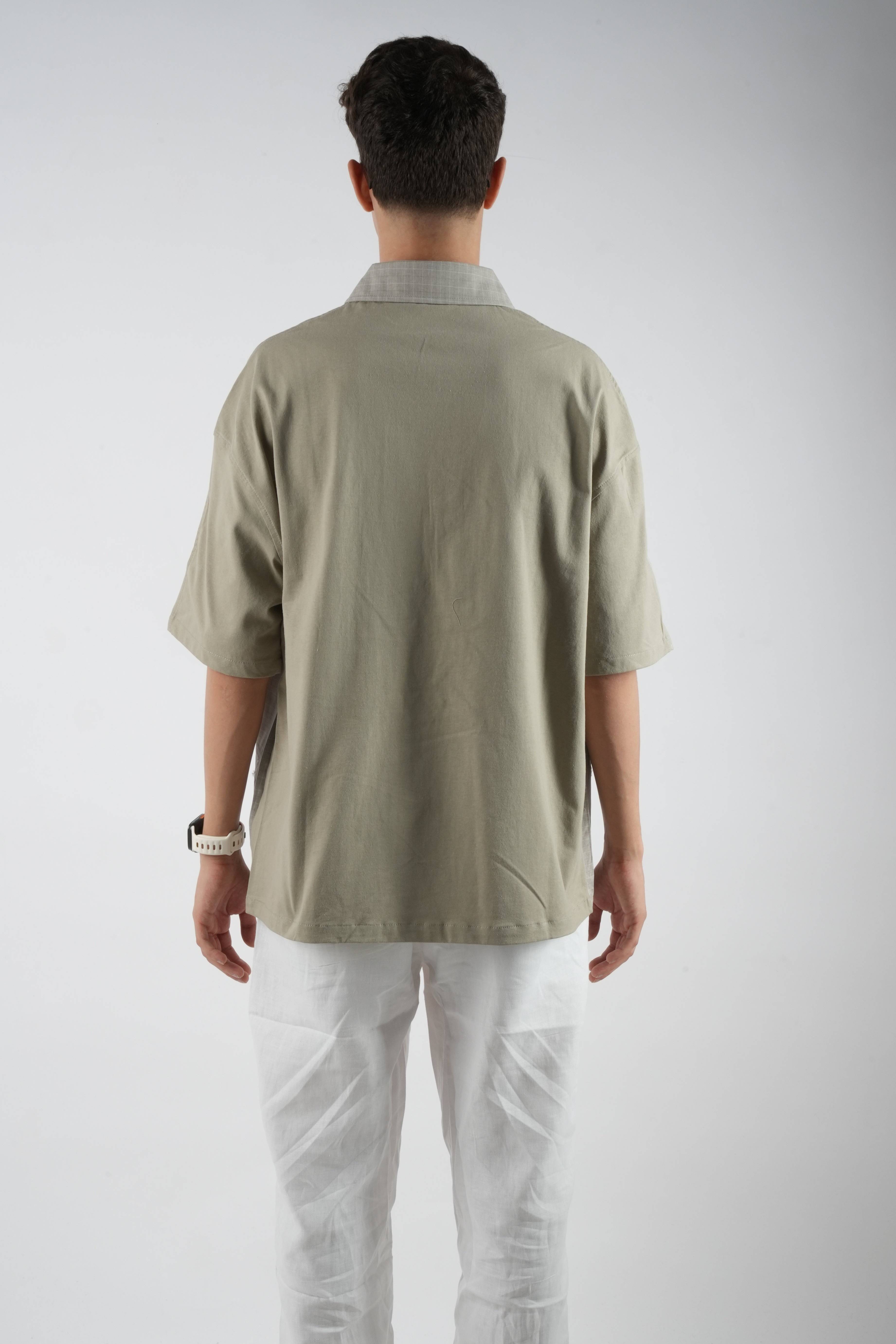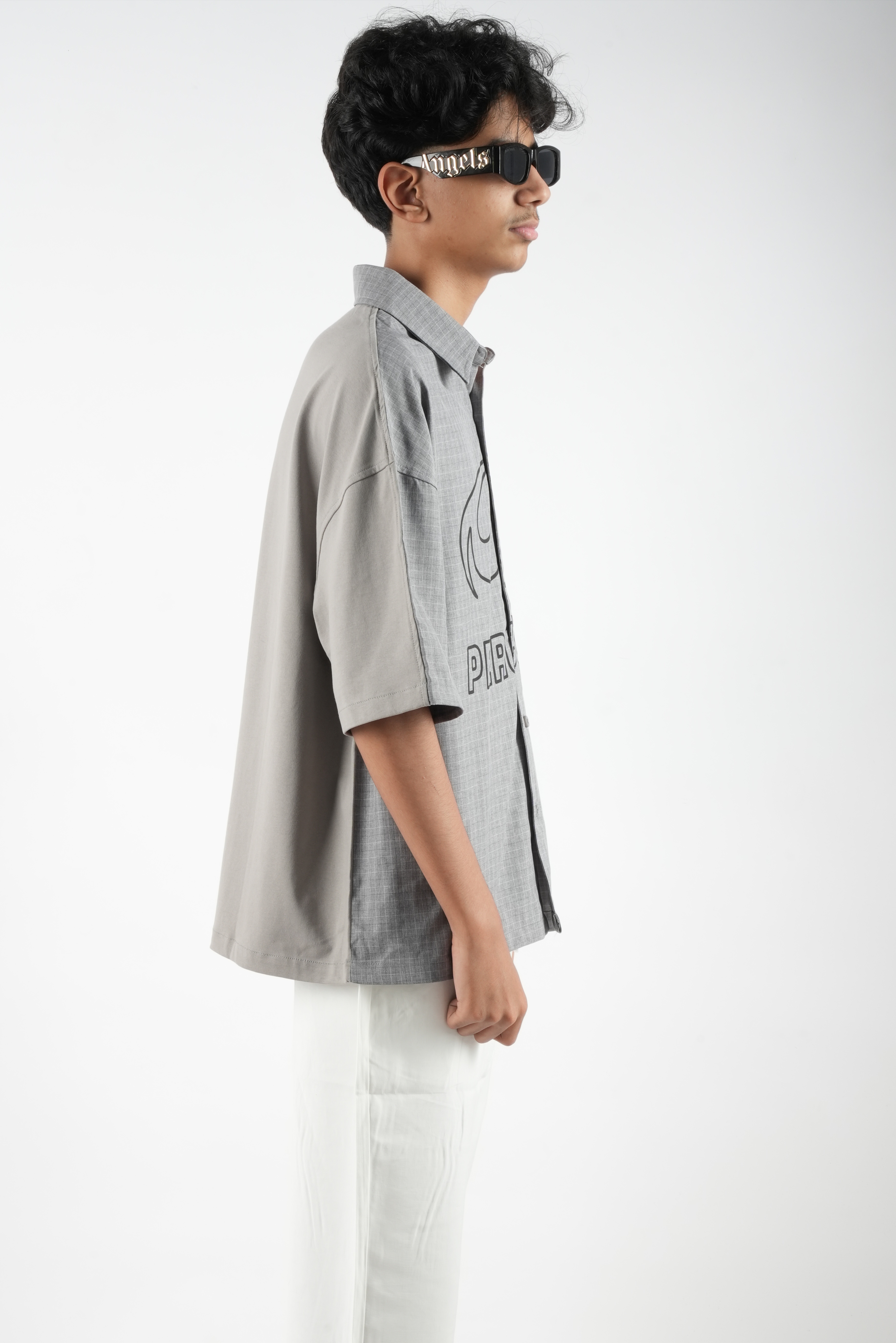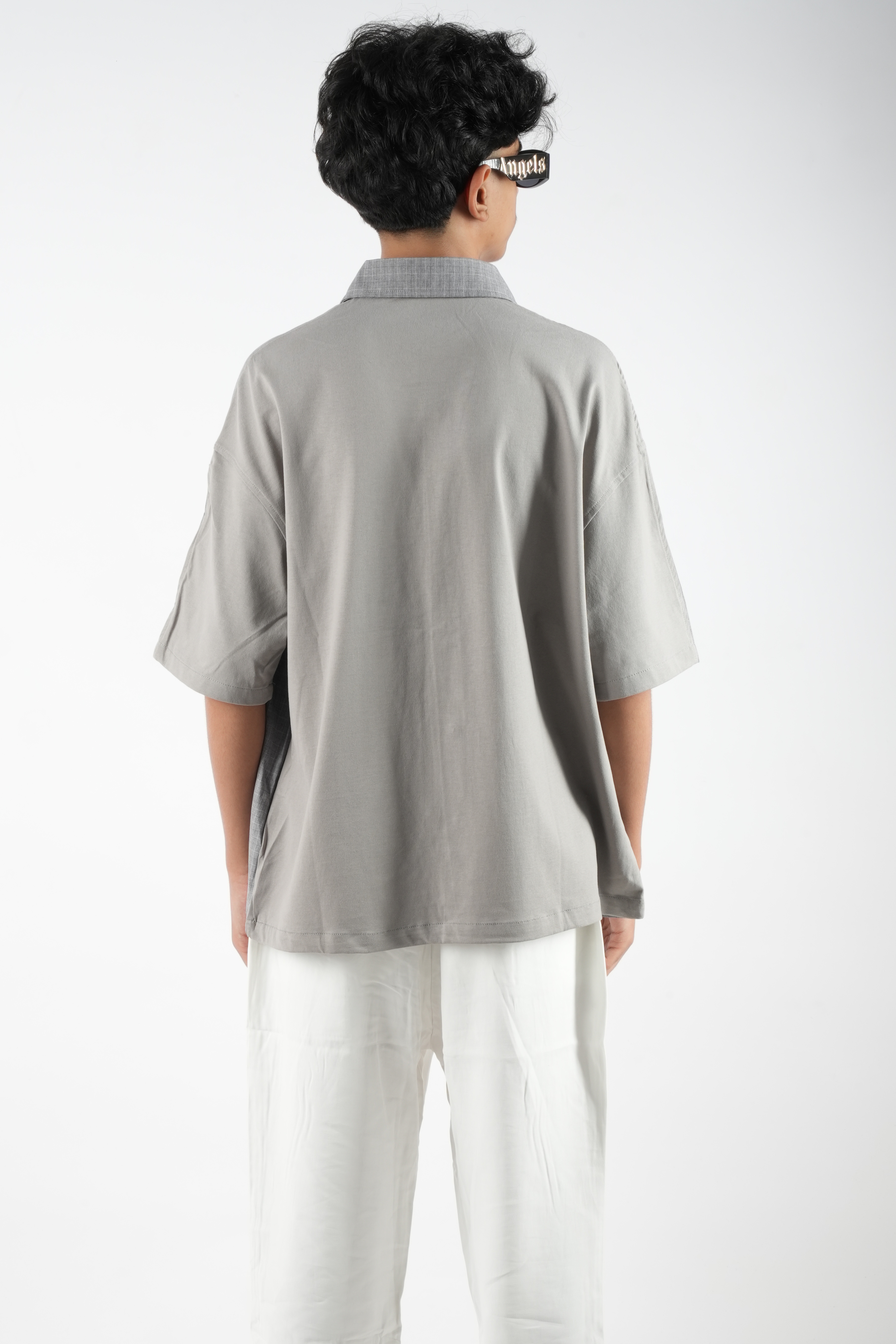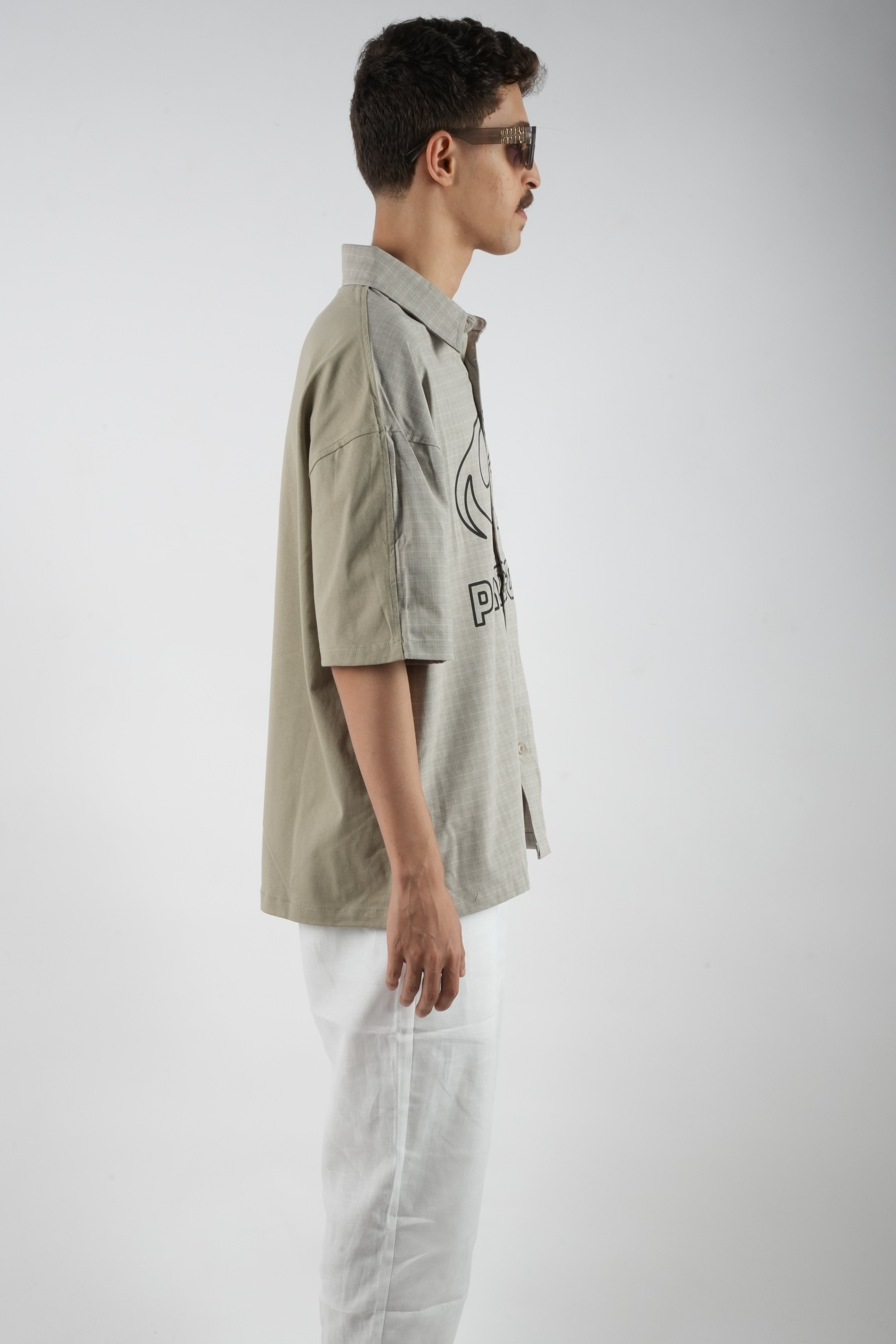 قميص/تيشيرت رجالي بتصميم مميز يجمع بين أناقة القميص وعملية التيشيرت. يأتي من الأمام بشكل قميص بأزرار وياقة كلاسيكية مع طبعة عصرية كبيرة تضيف لمسة ستريت ستايل لافتة، بينما من الخلف بخامة تيشيرت خفيفة ومريحة للارتداء اليومي. التصميم الأوفر سايز يمنحك إطلالة شبابية وعصرية تناسب مختلف المناسبات الكاجوال.